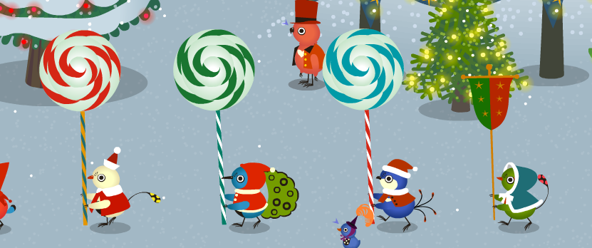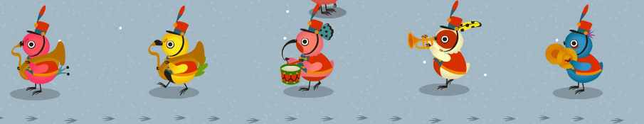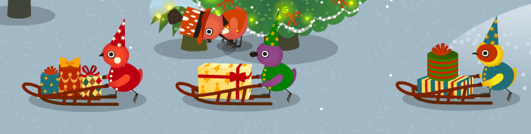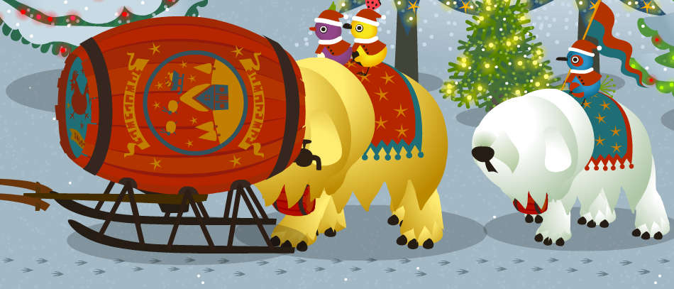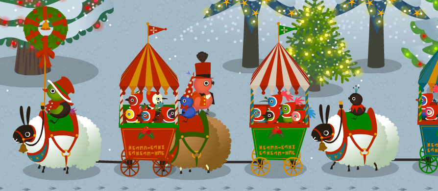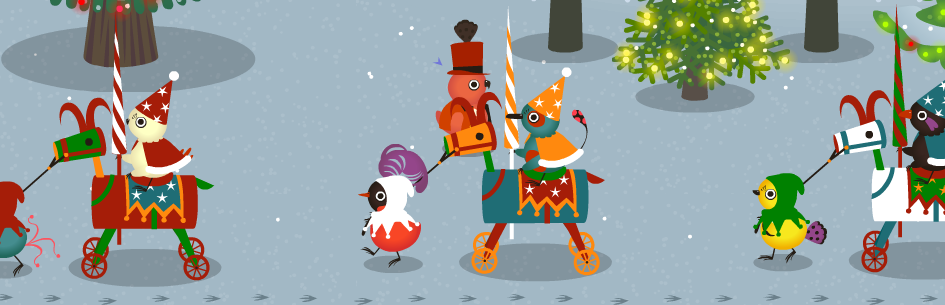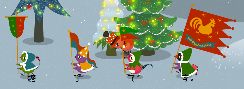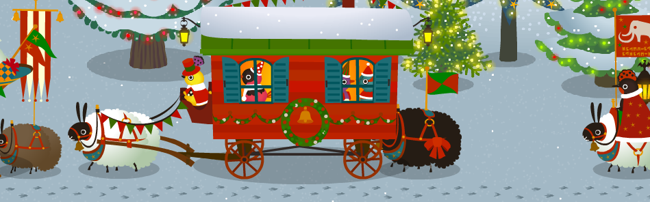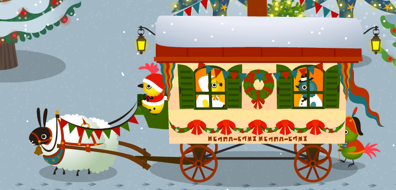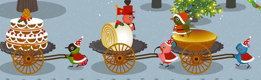 馬車に乗ったトリと、羊を引いてるトリと、うしろにいるトリ。(ガードマン?)