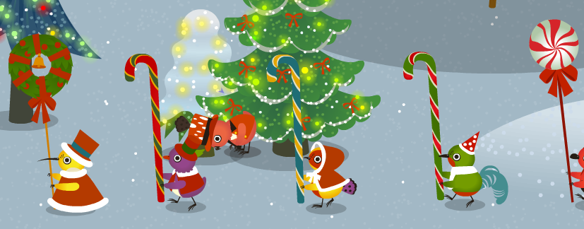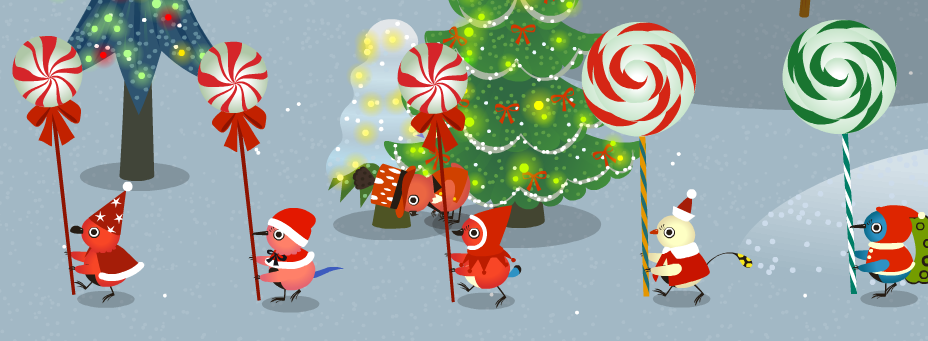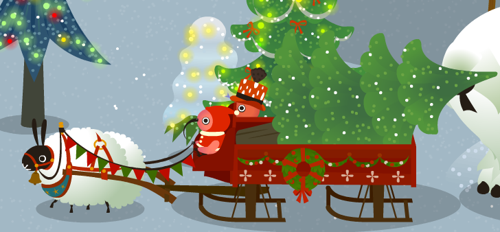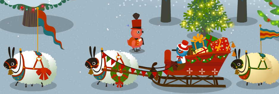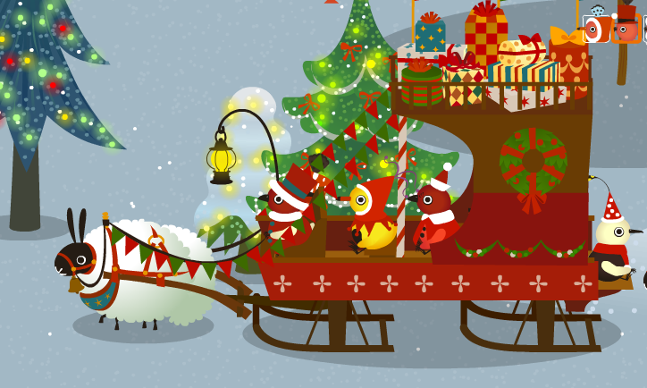 羊さんに乗っているトリと、なんかに乗ってる子供のトリたち。