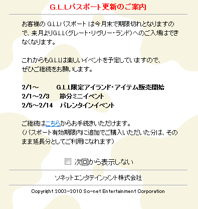 もうすぐでGLLが切れる&ヤミでバレンタインアイテム出現(゜∀゜)